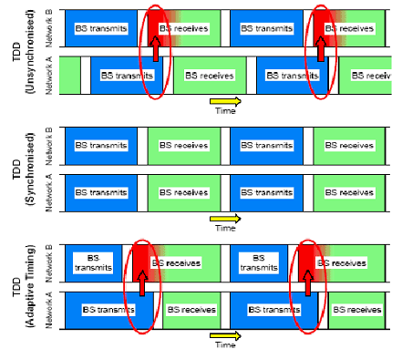 第三種情況:子幀配比(或時隙配比)不同,也會出現(xiàn)類似的干擾現(xiàn)象。