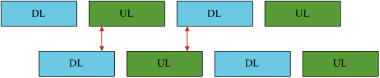 第一種情況:子幀配比(以及時隙配比)相同,但是由于不同步,導致基站A與基站B的下行之間時序錯亂,A的下行發(fā)射會對B的接收帶來干擾,同時B的下行也會對A的接收造成干擾;同理,對于上行也會出現(xiàn)類似現(xiàn)象。