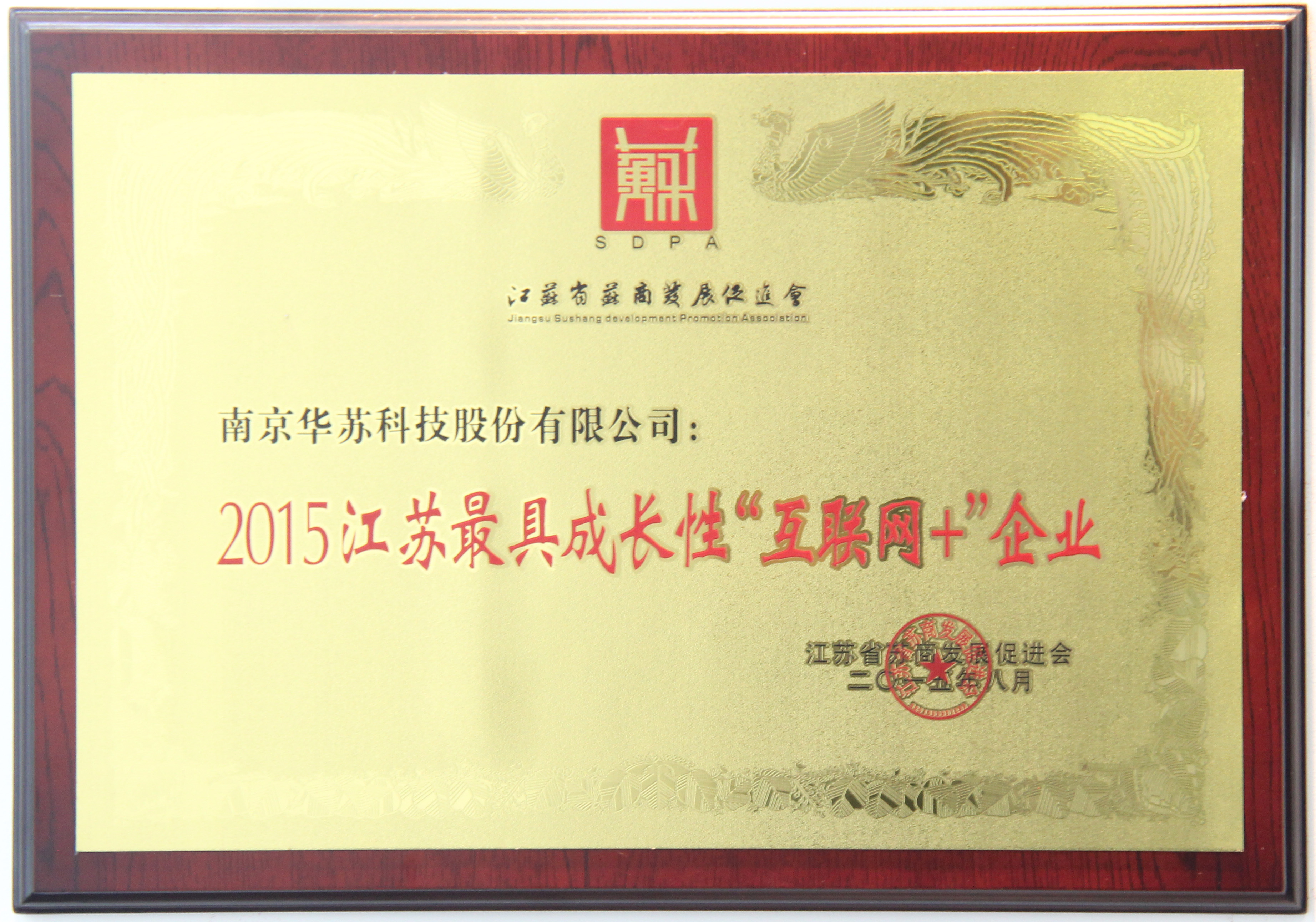 華蘇榮膺“2015江蘇最具成長性‘互聯網+’企業”稱號