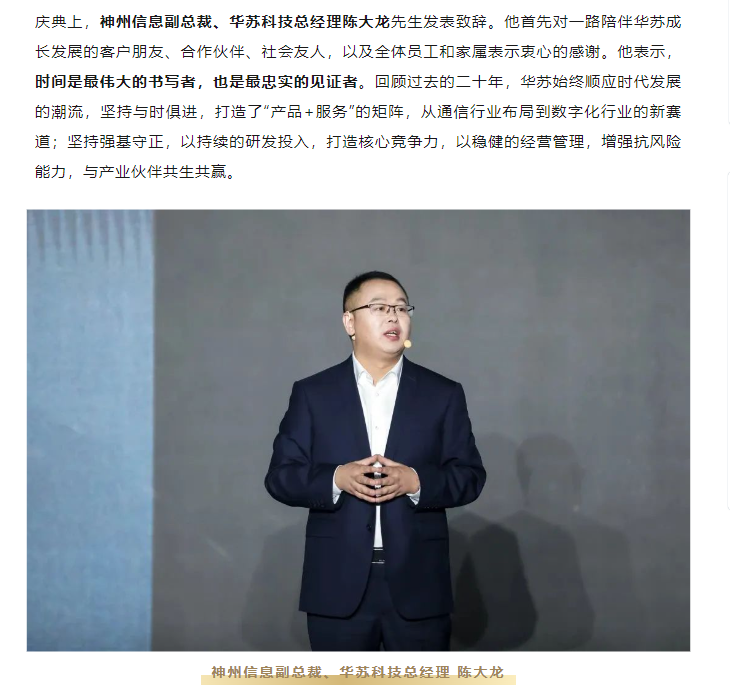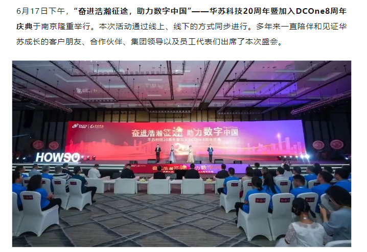:6月17日下午,“奮進浩瀚征途,助力數(shù)字中國”——華蘇科技20周年暨加入DCOne8周年慶典于南京隆重舉行。