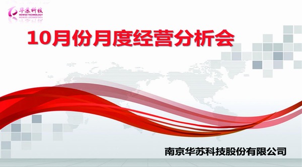 11月15日,南京華蘇科技股份有限公司于南京總部會議室召開了10月月度經營分析會議,公司高層及各部門負責人參席,各分公司采取與總部視頻連線的方式進行匯報及探討。