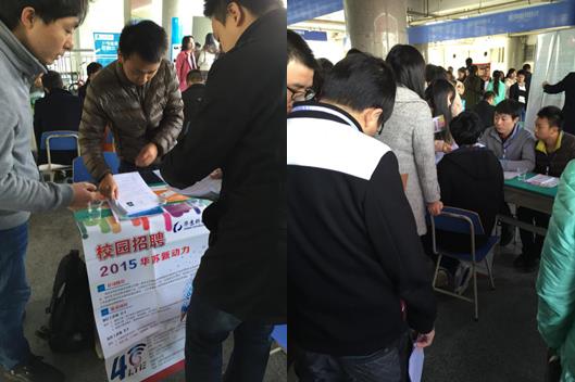 招聘會現場,人頭攢動,氣氛熱烈,華蘇科技的招聘負責人積極介紹了本公司的整體情況、發展歷程以及目前各運營商大規模發展4G和通信人才缺口較大的現狀,除此之外,還特別指出了華蘇“責任、誠信、專業、專注”的企業精神和“公平激勵、共同成長”的員工理念,引起了廣大學院學子的濃厚興趣。同學們也針對工作內容、工作方式和工作崗位對專業的要求等進行了詳細的咨詢和提問并都得到了相對滿意的回答。