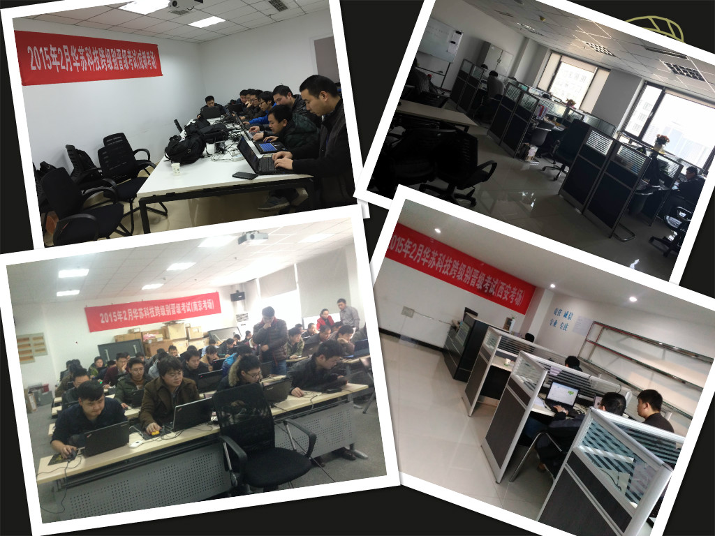 2015年2月14日,南京華蘇科技股份有限公司 組織了本年度第一次跨級別晉級考試,沈陽、南京、福州、西安、成都、濟南皆設有考點。考試分為兩部分:網考與面試,這既是公司對工程 師專業技能水平的一次考核,也是為優質服務打下堅定基石的前期準備。大家都全身心地投入到了考試當中。