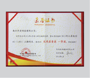 2014年江蘇電信4G(LTE)二期項(xiàng)目“優(yōu)秀質(zhì)量獎(jiǎng) 一等獎(jiǎng)”